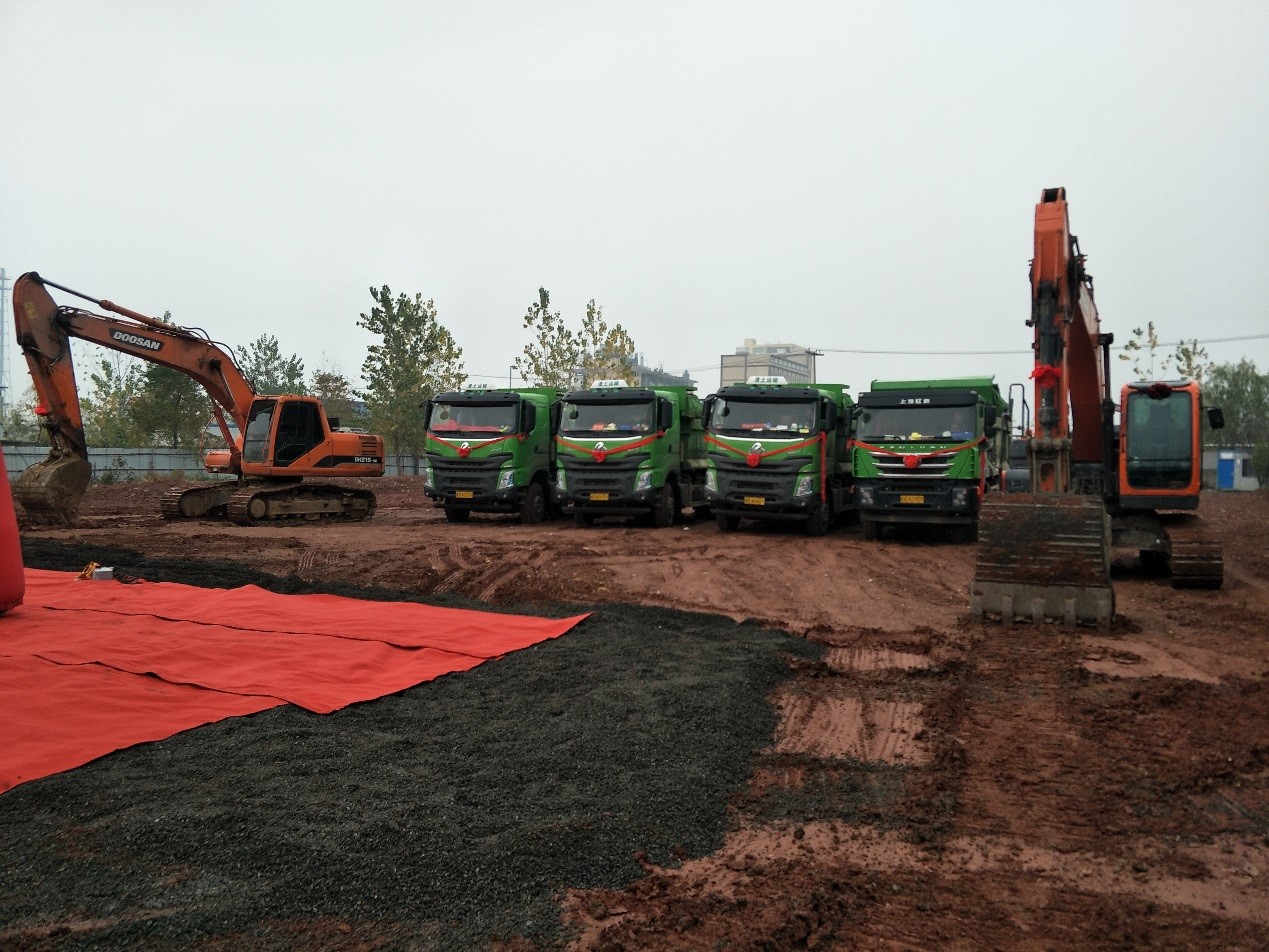 圖為:工程車輛順利就位