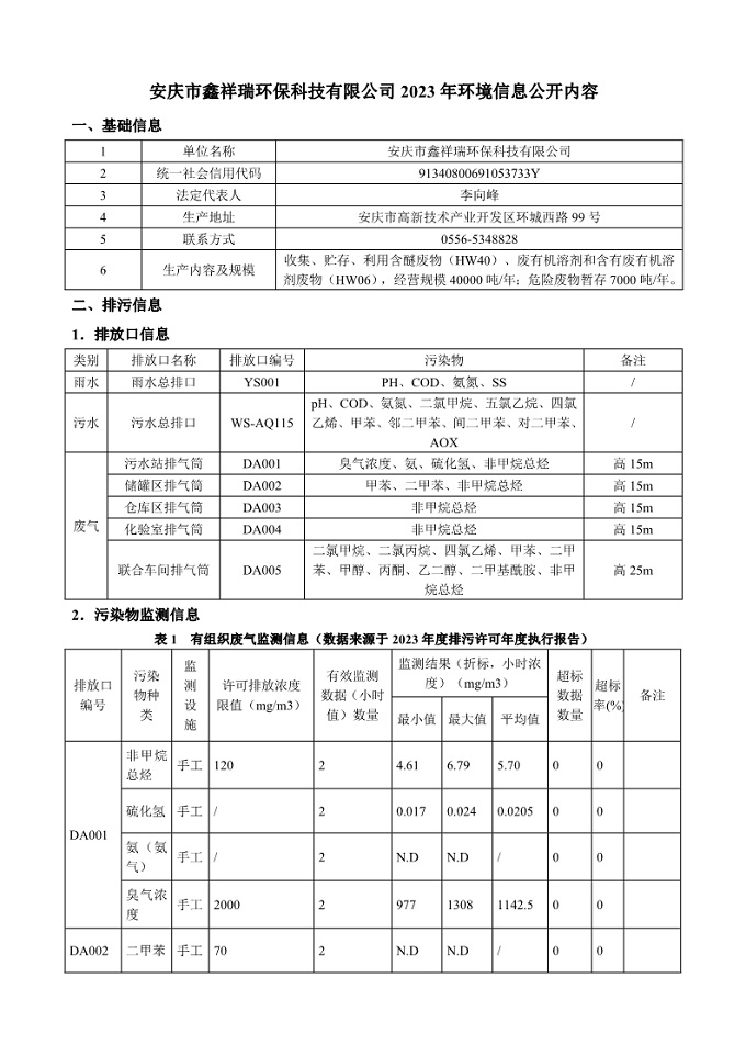 安慶市鑫祥瑞環(huán)??萍加邢薰?023年環(huán)境信息公開(kāi)內(nèi)容