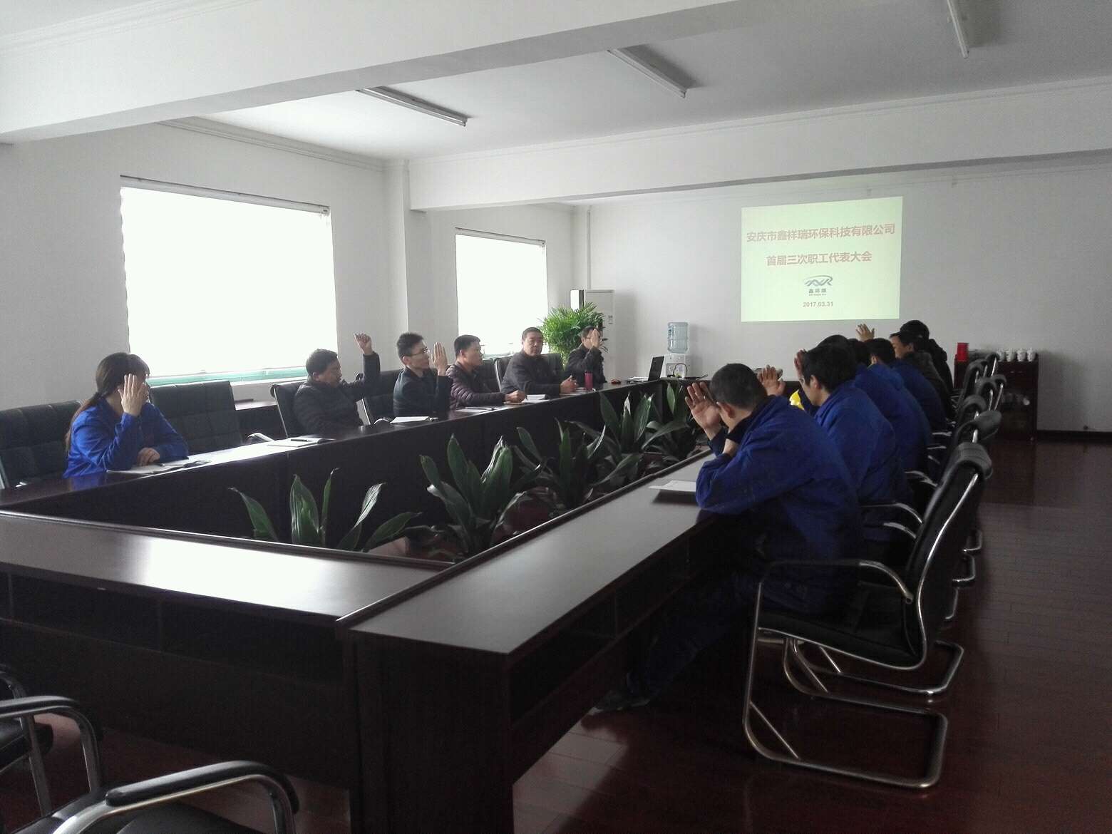 為加強企業(yè)民主管理,構(gòu)建和諧穩(wěn)定的勞動關(guān)系,增強企業(yè)向心力、凝聚力,3月31日下午,安慶市鑫祥瑞環(huán)保科技有限公司成功組織召開了首屆三次職工代表大會。會議由職代會副主任陳合主持,公司領(lǐng)導(dǎo)姚喜軍、王龍江列席會議。會議以表決的形式增補高豹、張慶為職工代表,審議并通過了《安慶市鑫祥瑞環(huán)??萍加邢薰締T工手冊(修訂版)》、《安慶市鑫祥瑞環(huán)??萍加邢薰拘匠曛贫龋ㄐ抻啺妫?,完成了全部會議議程。會上,公司副總經(jīng)理王龍江對薪酬制度修訂稿做了詳細講解,強調(diào)了本次薪酬制度的最大變化是對員工職業(yè)發(fā)展“雙通道”的設(shè)計,為員工職業(yè)生涯量身定制發(fā)展路徑。此次職代會在和諧融洽的氛圍中圓滿結(jié)束。